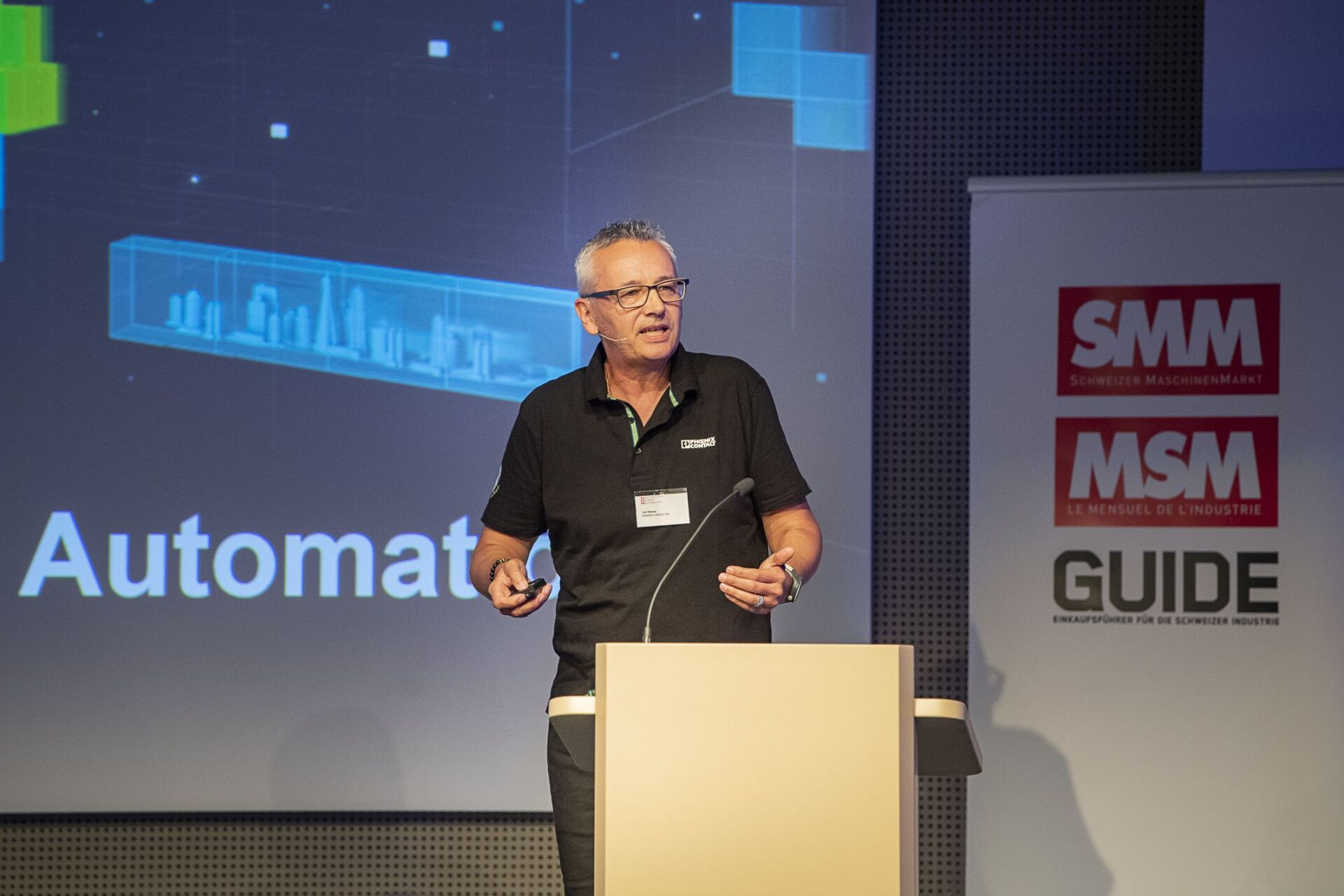 10. September 2019 im Forum der Messe Bern über die neuesten Trends in der Branche informieren. Das Spektrum der Referate reichte von fahrerlosen Fahrzeugen, digitaler Vakuumtechnik bis hin zur Mensch-Roboter-Kollaboration und digitalen Service-Modellen.